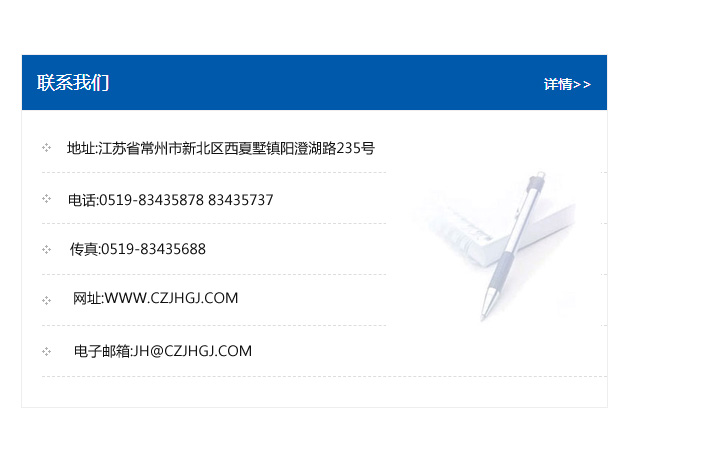 傳真:0519-83435688    郵編:213135    網址:WWW.czjhgj_com.koju-sh.com    電子郵箱:JH@czjhgj_com.koju-sh.com